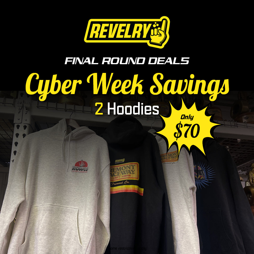 *Eligible on vintage motorsport hoodies only. Discount automatically applied at checkout. Ends 12/7