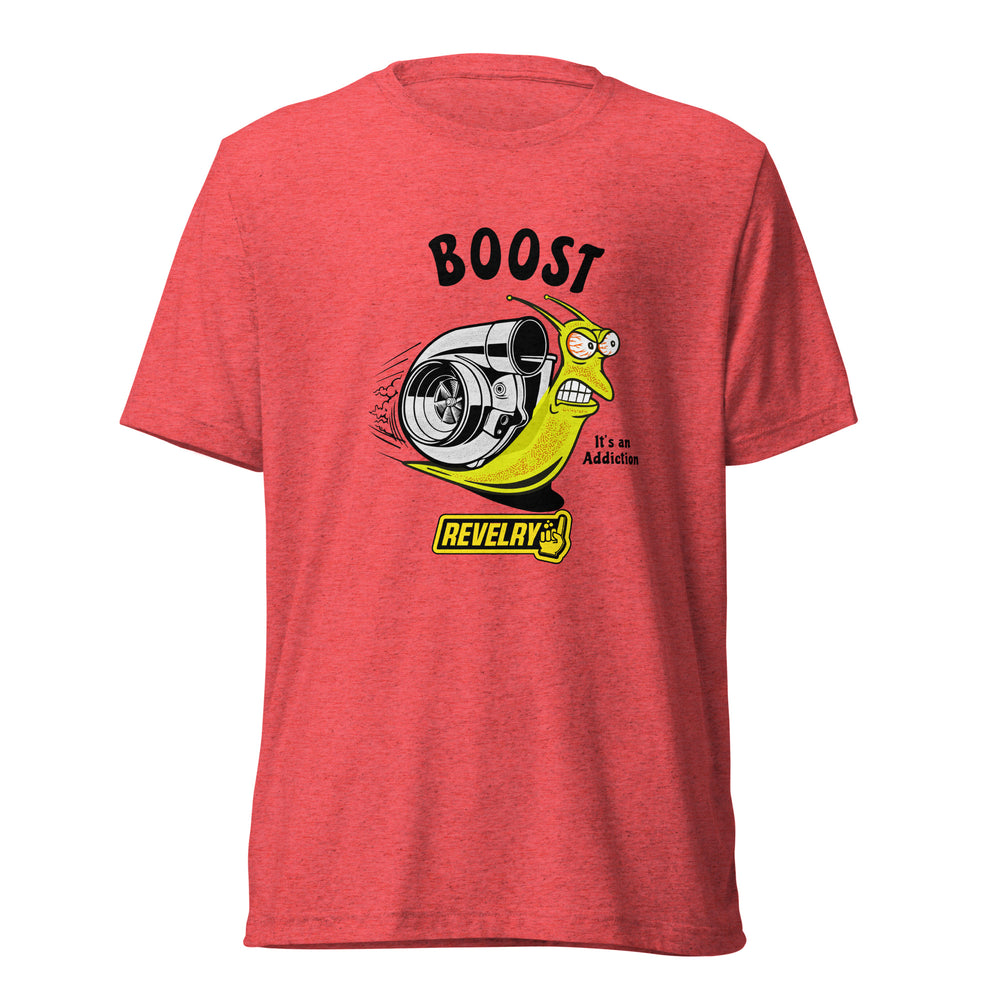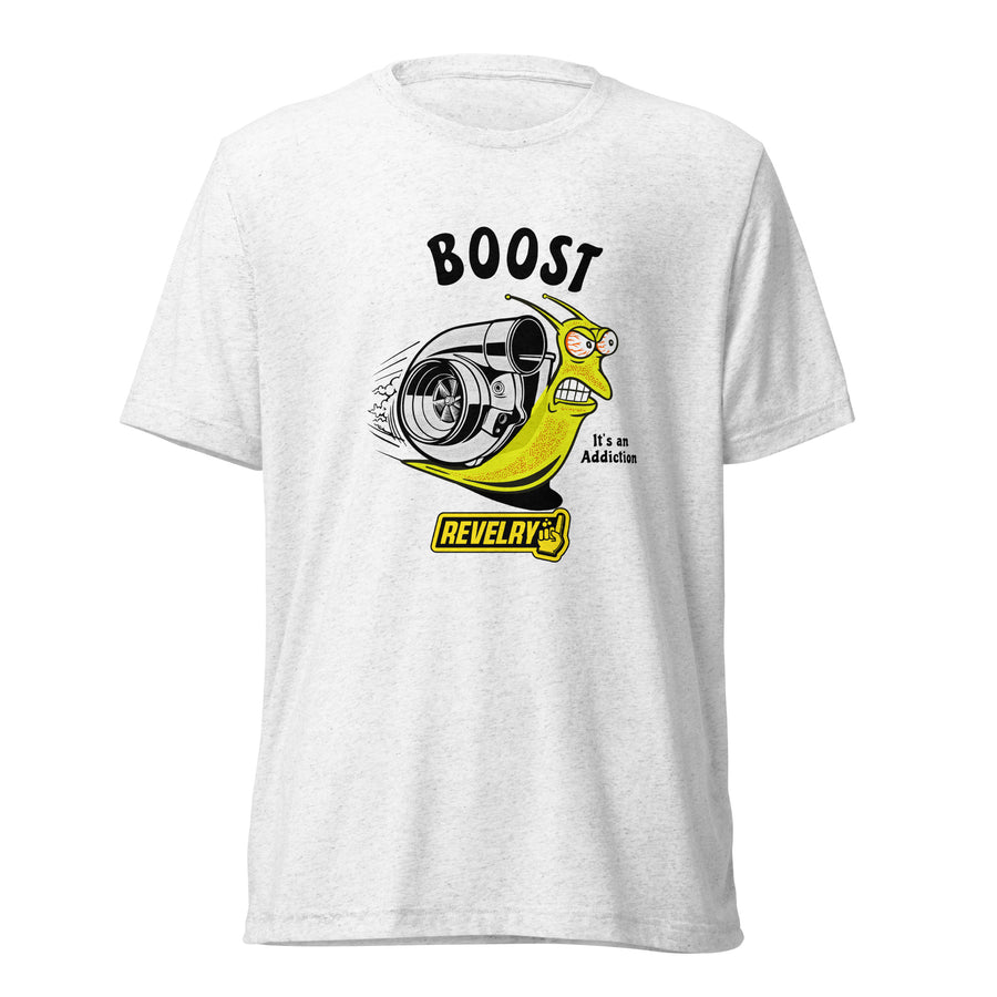 Experience the addictive comfort of the Boost t-shirt! Crafted from a unique tri-blend fabric, it offers a vintage, fitted look while celebrating our passion for the powerful boost that makes a race car pull harder. Its exceptional durability ensures it remains super comfortable even after countless washes.