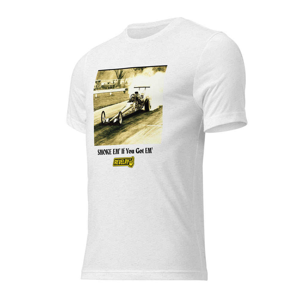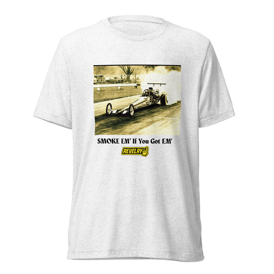 Rev up your style with our vintage tri-blend t-shirt, featuring the bold statement: "Smoke 'Em If You Got 'Eml!" This tee not only delivers a cool vintage look, but it also offers sage advice for motorsport enthusiasts. Made from a premium tri-blend fabric, this shirt is designed for exceptional durability and superior comfort, holding up wash after wash without losing its softness. Perfect for casual wear or hitting the track, this fitted vintage t-shirt is a must-have for anyone who loves the thrill of a good burnout.